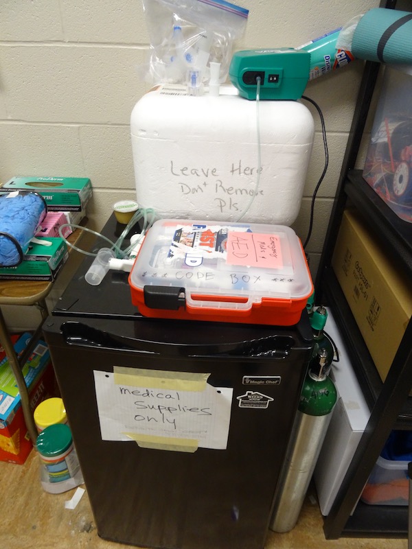 Medical supplies were donated by the Red Cross, and by doctor’s offices in the community. Fortunately, a few pharmacies were still operating. The shelter provided volunteers to drive people on errands, including to the pharmacy. We gave away a lot of meds, and wrote a lot of prescriptions for people who had left their house in a hurry in the middle of the night as the water flowed into their houses and they fled without their critical medications.